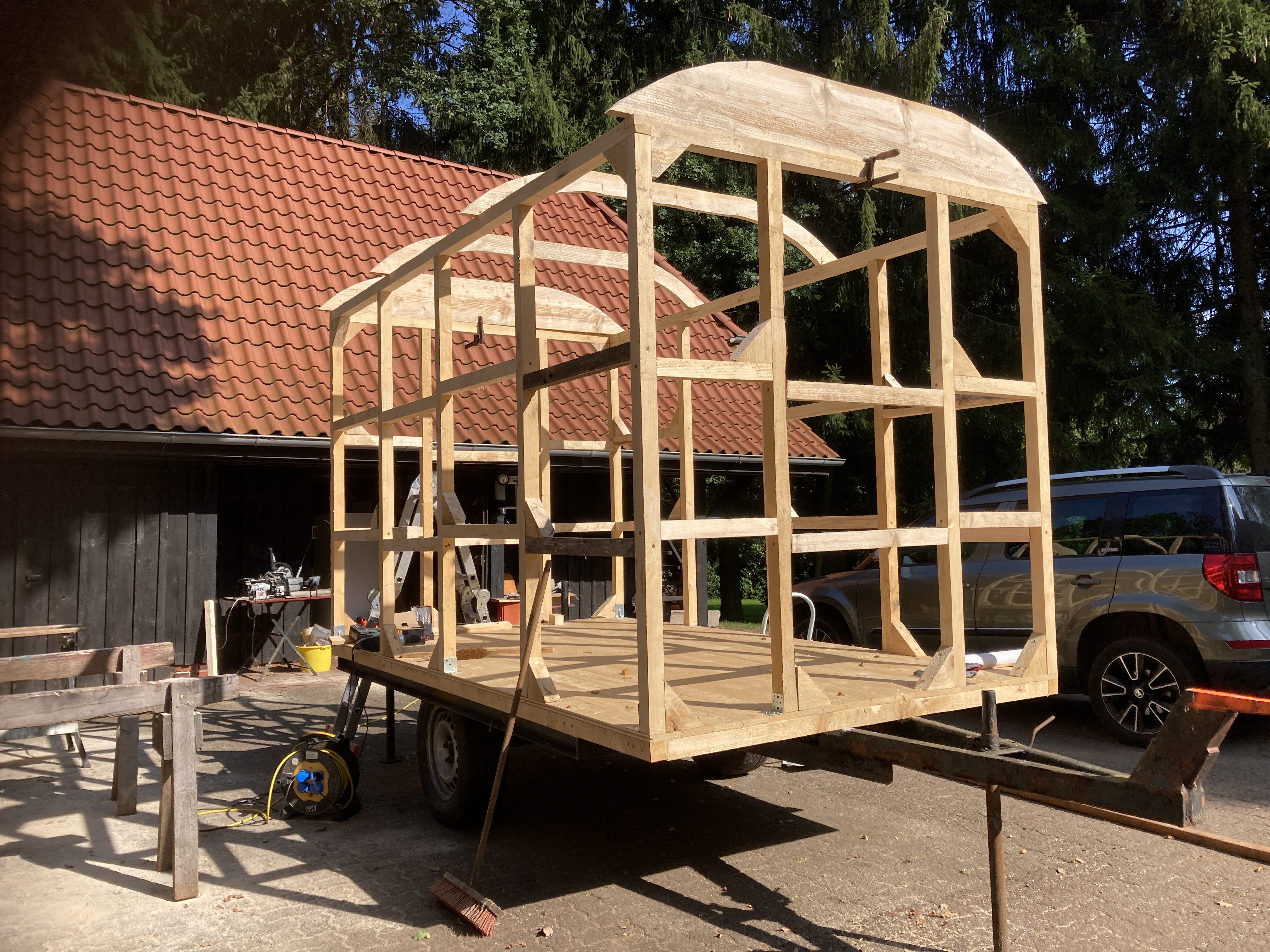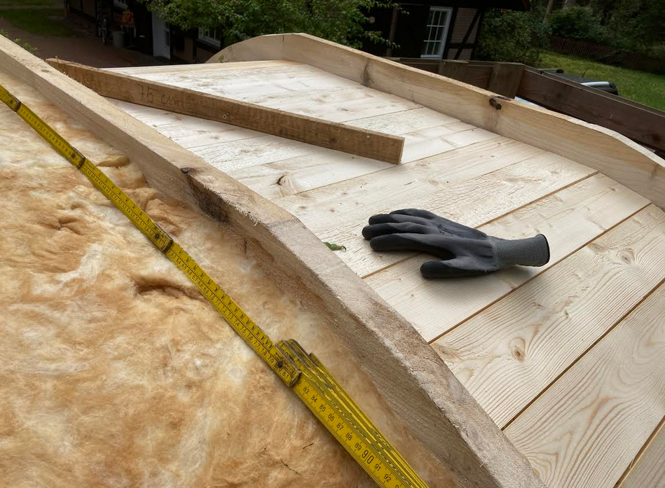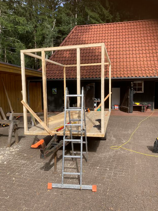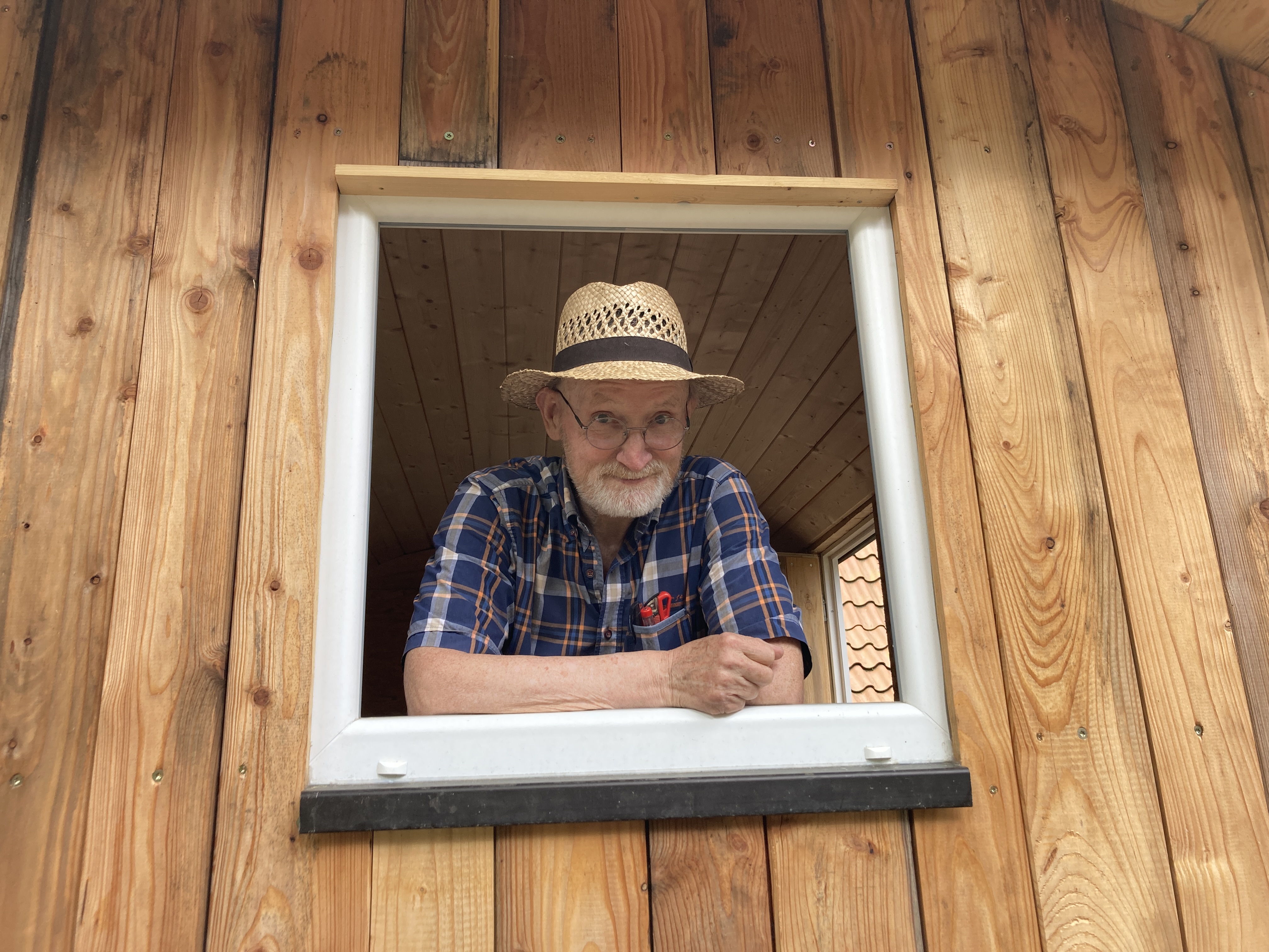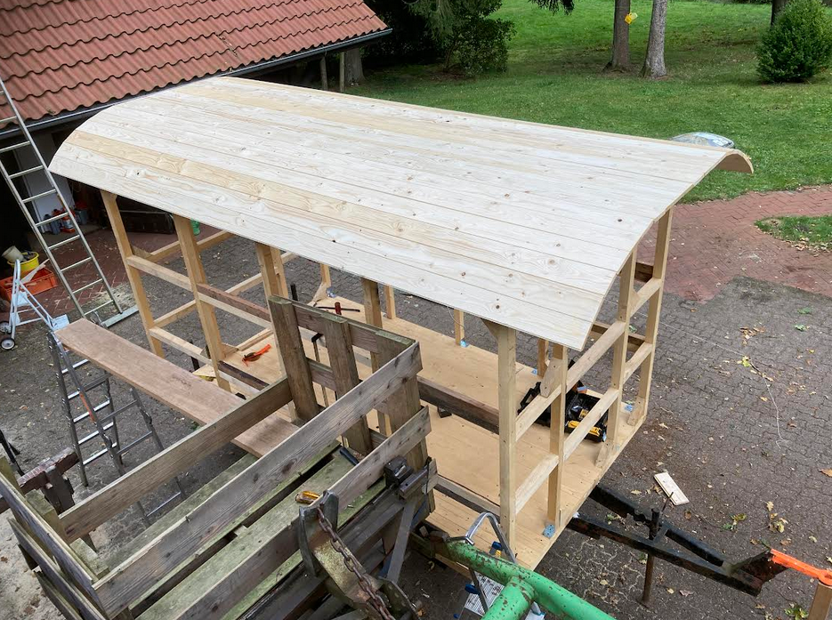 Kleine Anmerkung, um ehrlich zu bleiben: Die Fenster sind natürlich nicht selbst gebaut, sondern von OBI, die Tür hat unser Freund Jürgen maßgeschneidert, und beim Dach hat die Firma Stelter aus Müden geholfen.