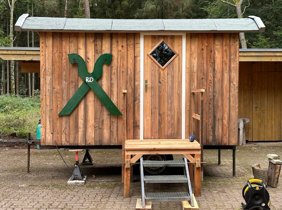 Alles fing mit einer Idylle im Revier meines Freundes Franz an: Dort stand 2023 ein schöner grüner Forstarbeiter-Bauwagen im Wald, und da das Revier aufgegeben wurde, sollte er weg. Im Heidehäuschen wurden manchmal die Betten knapp, und deshalb war die Idee schnell gefasst: Für eine schnelle (jagdliche) Übernachtung schien dieser Bauwagen eigentlich ideal geeignet, - und dazu stilvoll. Also: Her damit!