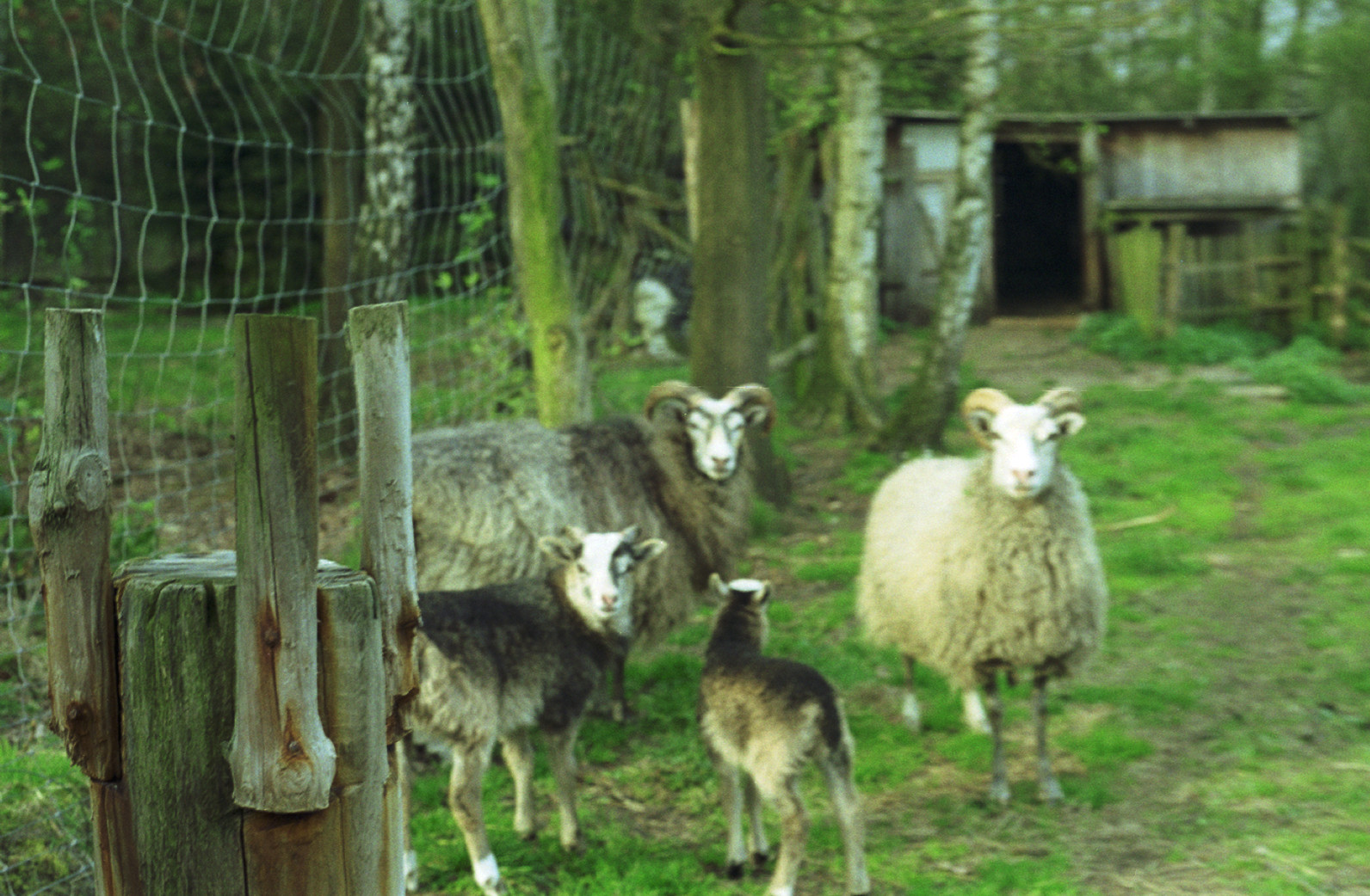Das Heide-Häuschen war schon immer mit Tieren und deren Haltung verbunden, - das reicht von der Jagd über die ständige Anwesenheit eines Hundes bis hin zur Haltung von Weidetieren, nämlich Schafen und Damtieren. Die von uns bevorzugte Schafrasse waren die sogenannten "Gotland-Schafe" aus Schweden, die extra aus Skandinavien importiert wurden, da sie sehr genügsam sind, gesund, wetter- /winterfest und vor allem ein ausgezeichnetes Fleisch lieferten (ohne talgigen Nachgeschmack bei abgekühltem Teller). Die Damtiere wurden in drei verschiedenen Park-Gattern gehalten, eine dunkel-wildfarbene Rasse, die extrem scheu ist und auf externe Reize umgehend mit Flucht und Unruhe reagieren, eine Herde mit der normalen Damwild-Punktung und dem Aalstrich auf dem Rücken, und ein Gatter mit fast weißen Damtieren.
