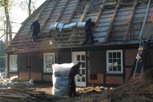 Deshalb wurde 2009 schweren Herzens beschlossen, das Reetdach gegen ein Ton-Pfannendach auszutauschen, natürlich unter Beibehaltung der Reetdachüberstände, um möglichst viel vom Charakter des ursprünglichen Reetdachhauses zu erhalten.